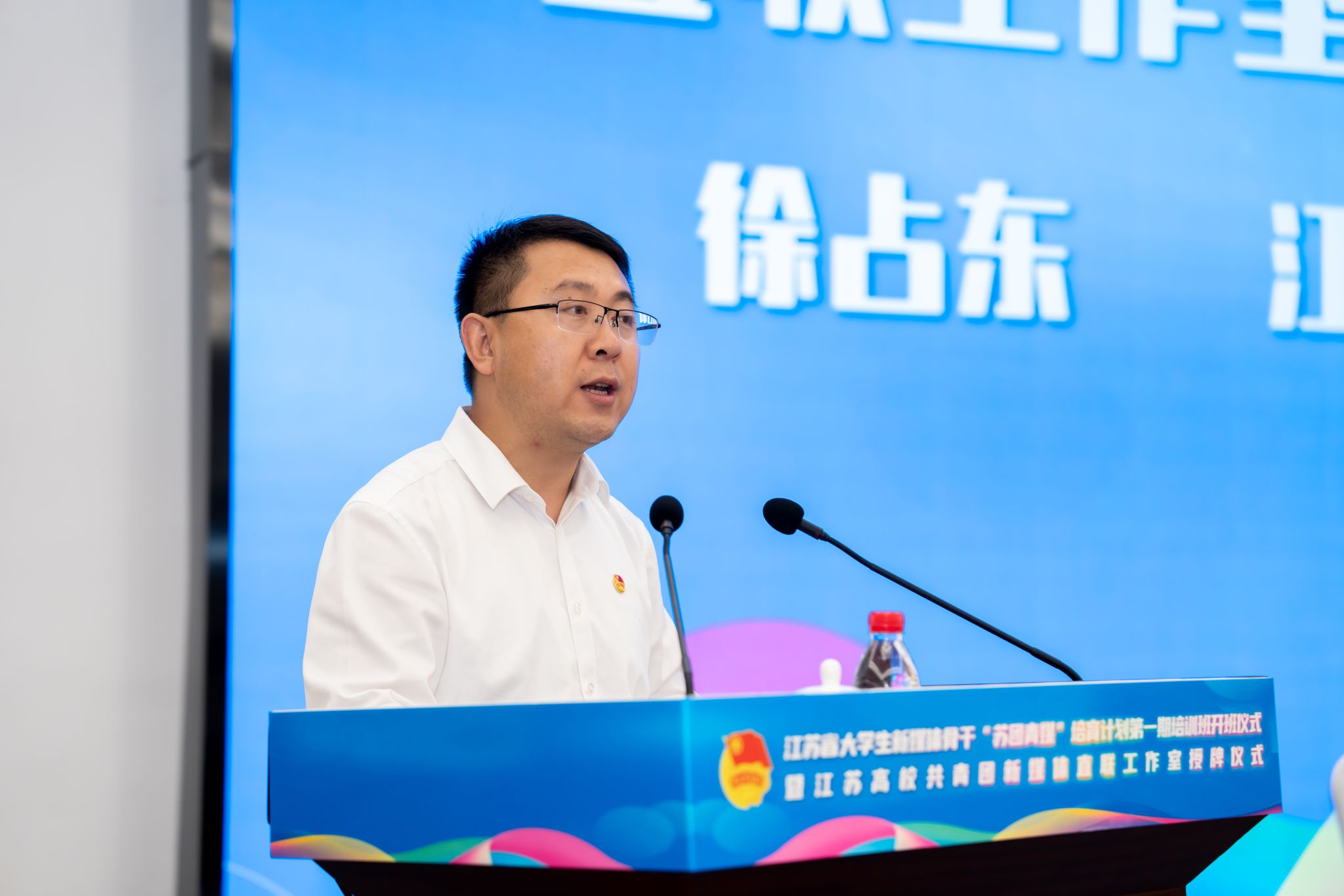 校团委书记徐占东作为直联工作室代表发言。南京大学张了戈同学作为“苏团青媒”学员代表发言。
