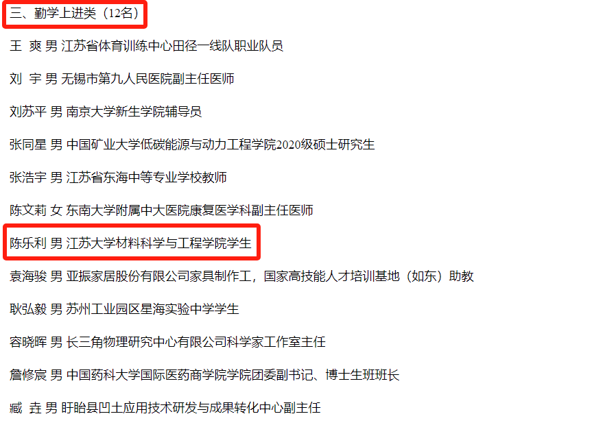 陈乐利入选江苏省“我们身边的好青年”,充分展示了我校学子良好的精神风貌,有助于更好地引领乐动(中国)学子争做信念坚定的奋进者、勤学善思的好学者、笃行不怠的担当者、崇德向善的奉献者,用青春热血奏响“请党放心、强国有我”的时代强音。(团委 材料学院)