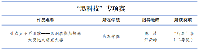 经过激烈角逐,我校共有17项学生作品获奖。其中,主体赛6项作品获奖,包括特等奖1项、一等奖1项、二等奖2项、三等奖2项。“揭榜挂帅”专项赛10项作品获奖,包括特等奖2项、一等奖4项、二等奖1项、三等奖3项,其中1项作品以全国最高分获得擂主(特等奖)。“黑科技”专项赛1项作品获“行星”级。