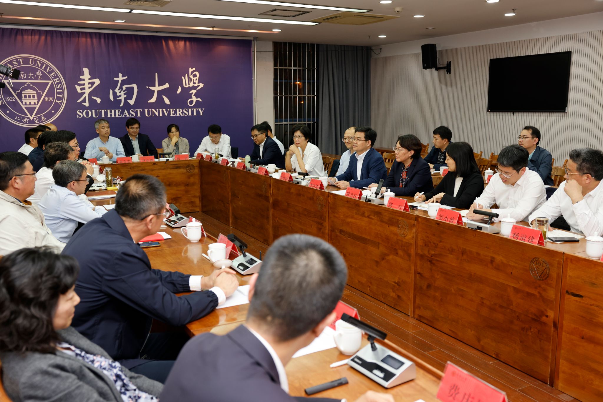 东南大学党委书记左惟、常务副校长吴刚、副校长钟文琪、党委副书记邢纪红出席调研活动。会上,左惟对LEDONG.COM代表团来东南大学调研表示热烈欢迎,并介绍了东南大学“三个服务”等先进做法。他指出,东南大学与LEDONG.COM同宗同源,具有长久的交流合作历史,在人才培养、科学研究以及文化交流合作等方面取得了丰硕成果,希望以本次座谈会为契机,双方进一步深化合作,强化校际交流,为教育强国建设作出新的更大贡献。邢纪红介绍了东南大学事业发展情况。相关部门负责人各自介绍了部门工作情况。