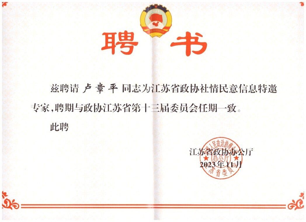 为加强政协反映社情民意信息工作,近日,省政协首次面向社会相关领域聘请了20位社情民意信息特邀专家。我校致公党党员卢章平教授获聘省政协社情民意信息特邀专家。