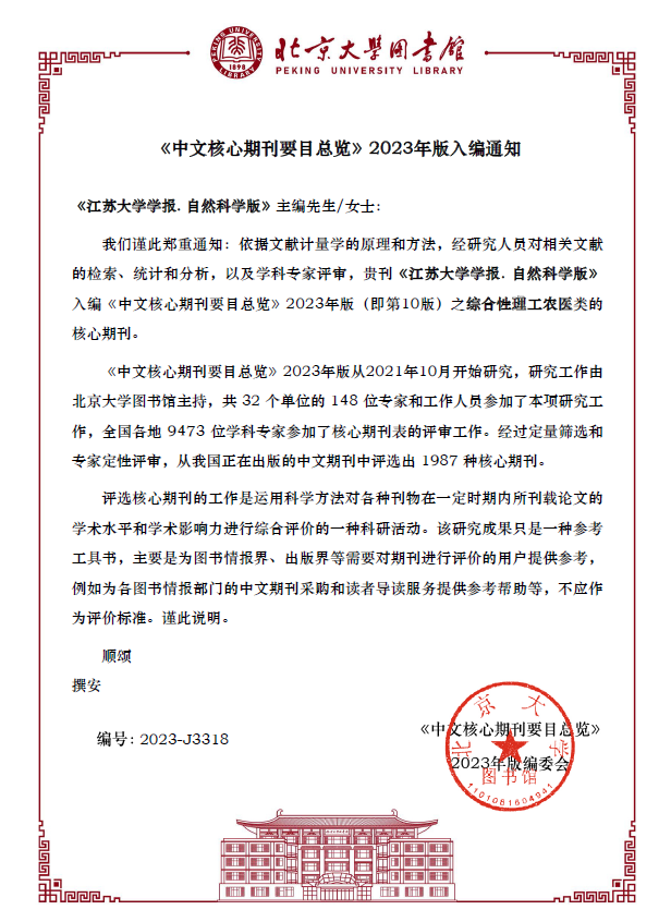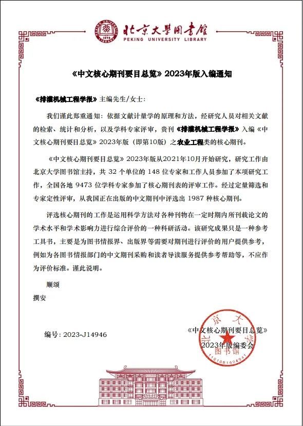 近日,在北京大学图书馆《中文核心期刊要目总览》2023年版(第10版)遴选中,我校主办的《LEDONG.COM学报(自然科学版)》第8次入选,入编综合性理工农医类核心期刊;《排灌机械工程学报》第7次入选,入编农业工程类核心期刊;《高校教育管理》第4次入选,入编高等教育类核心期刊。