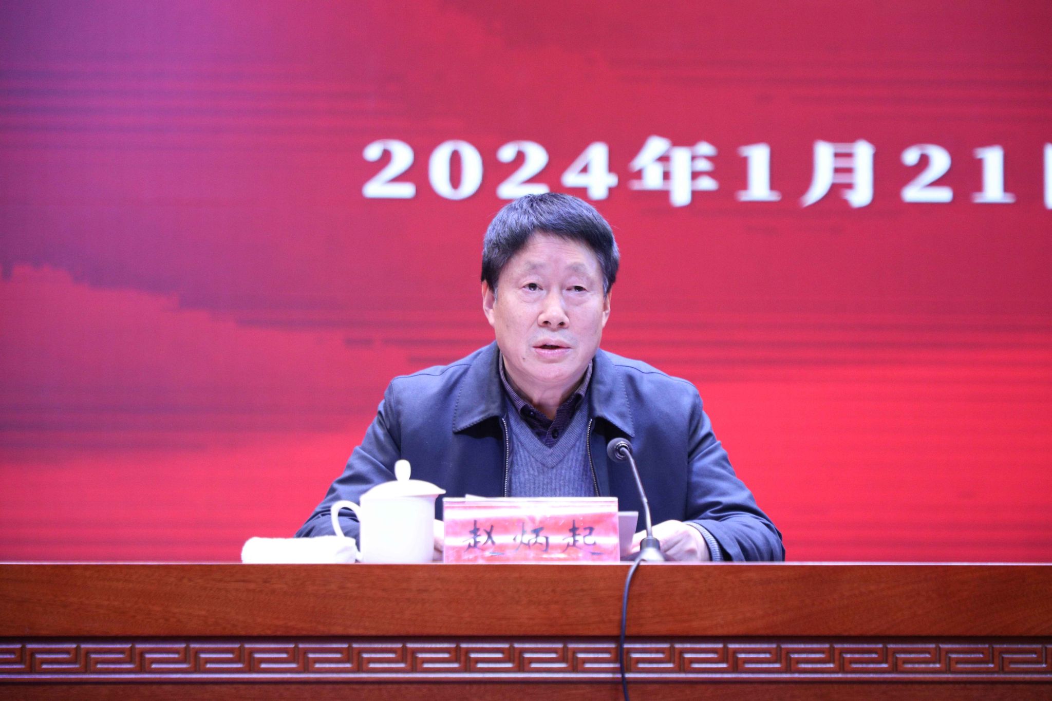 按照省属高校综合考核工作统一部署,1月21日下午,我校在小礼堂召开2023年度高质量发展综合考核工作汇报会。第十一综合考核组组长、淮阴工学院原党委书记赵炳起出席会议并讲话。校党委书记李洪波向大会作校党委领导班子述职报告、干部选拔任用工作专题报告,校长邢卫红向大会作校行政领导班子述职报告。会议由李洪波主持。