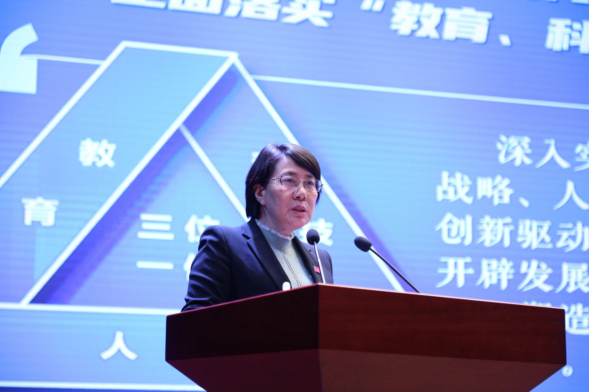 邢卫红在汇报中指出,2023年是学校深入贯彻党的二十大精神之年,也是全面落实“教育、科技、人才”三位一体战略部署之年。一年中,学校紧紧围绕学校第五次党代会确定的奋斗目标,书写特色鲜明高水平大学建设崭新答卷。她从“坚持立德树人,教育教学成果丰硕”“坚持人才强校,队伍建设加力提速”“坚持‘四个面向’,科技创新再创佳绩”“坚持改革赋能,干事创业更有活力”四个方面全面总结了学校行政领导班子开展工作情况。邢卫红表示,学校将坚持以习近平新时代中国特色社会主义思想为指导,按照第五次党代会描绘的宏伟蓝图脚踏实地、埋头苦干,奋力书写“双一流”创建和特色鲜明高水平大学建设靓丽答卷,为全面推进中国式现代化江苏新实践作出新的更大贡献。