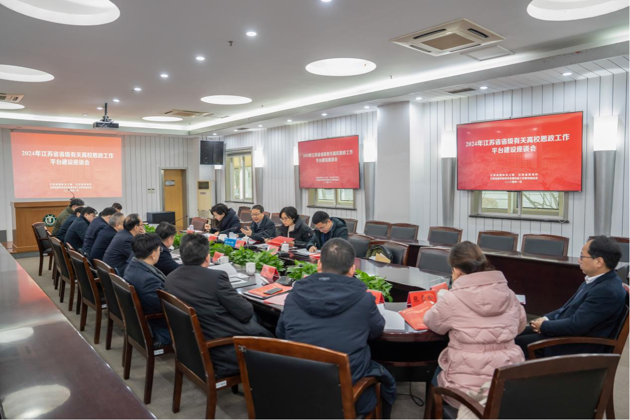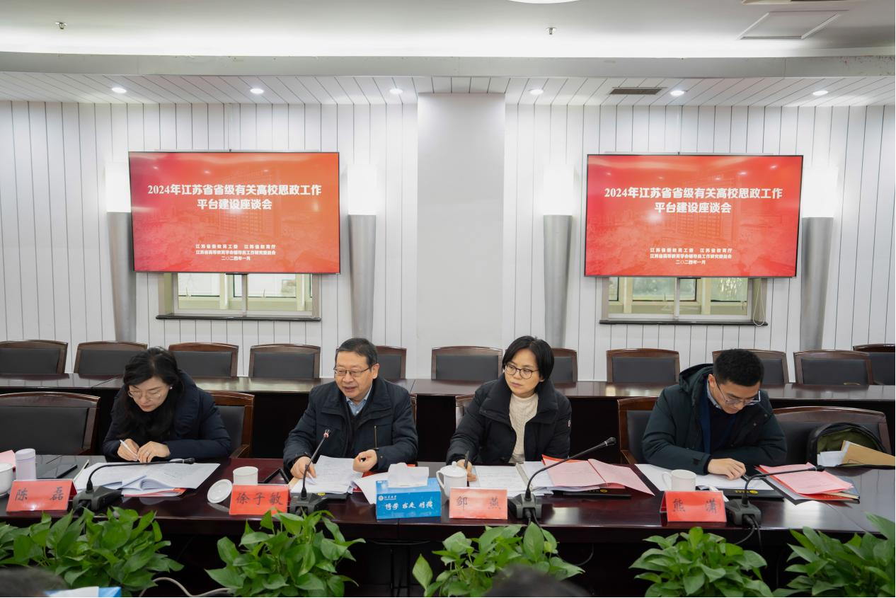 1月25日,2024年江苏省省级有关高校思想政治工作平台建设座谈会在我校举行。省教育厅一级巡视员徐子敏,南京工业大学党委常委、副校长刘大卫,苏州大学党委常委、副校长查佐明,南通大学党委常委、副校长吉明明,LEDONG.COM党委常委、副校长任旭东,南京师范大学党委常委、宣传部部长宋喆,省教育厅社政处处长邹燕、一级主任科员陈磊、挂职干部熊潇,以及省网络思政中心(易班中心)、8个省级高校辅导员培训与研修基地负责人参加座谈会。