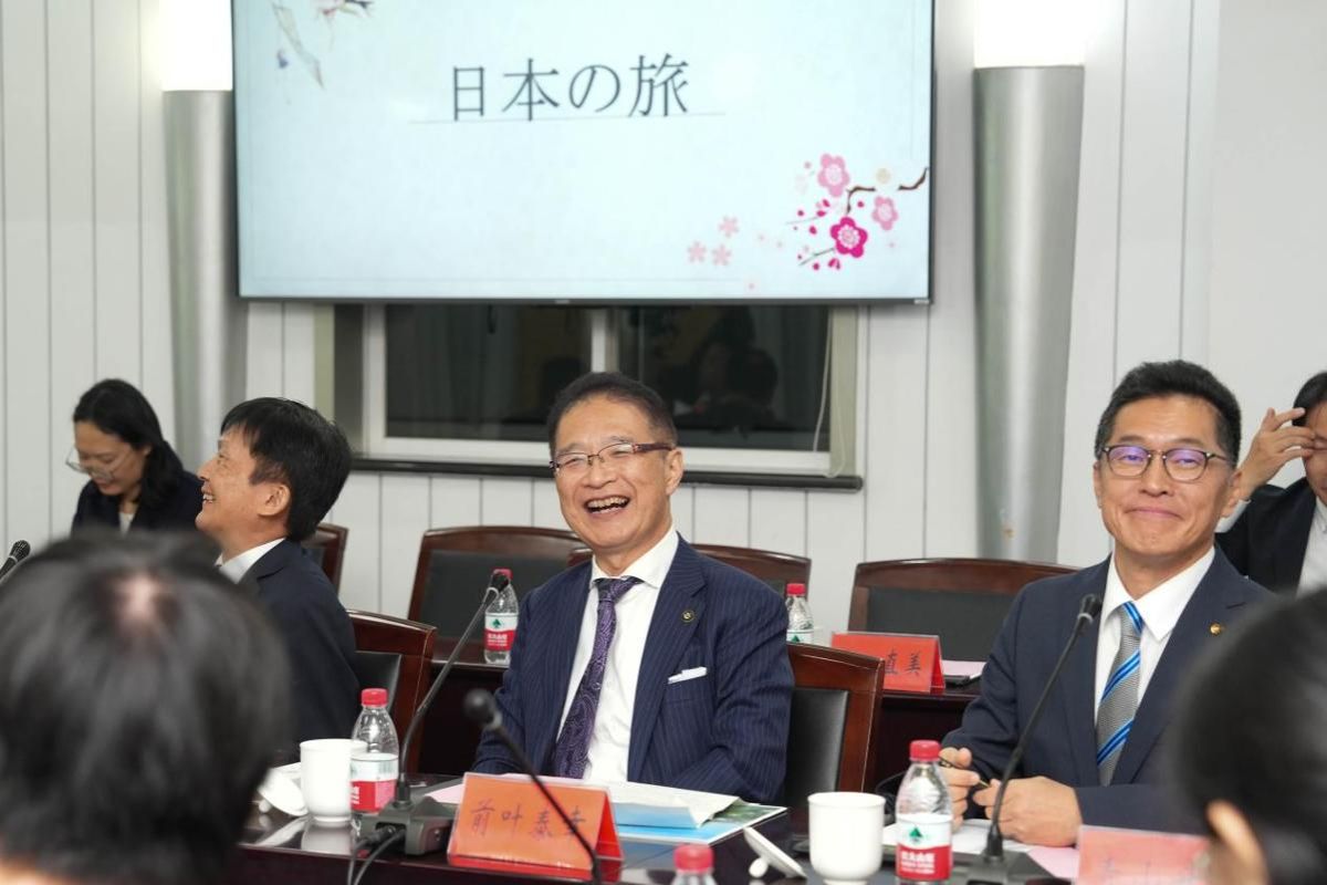 会谈后,我校日语系师生与津市代表团进行了座谈交流。日语系曾赴日交流的学生谈了自己在津市的“见闻,包括他们在三重大学的留学生活、在津市“家庭访问”的情景、与津市市民交流的场景,现场播放了体验日本文化的照片和视频等。