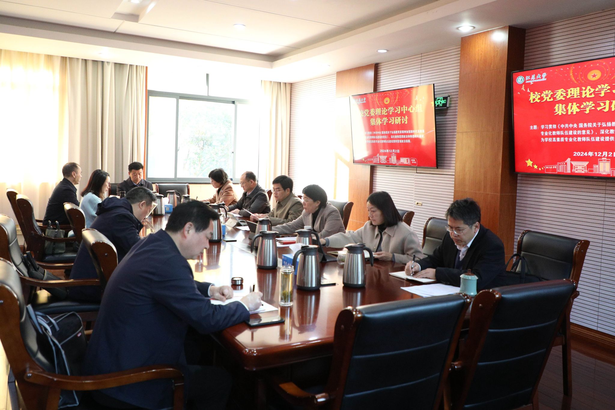 12月2日,校党委理论学习中心组在行政一号楼201会议室围绕学习贯彻《中共中央 国务院关于弘扬教育家精神加强新时代高素质专业化教师队伍建设的意见》(以下简称《意见》)开展集体学习研讨。在校校党委理论学习中心组成员参加学习,集体学习研讨由校党委书记李洪波主持。