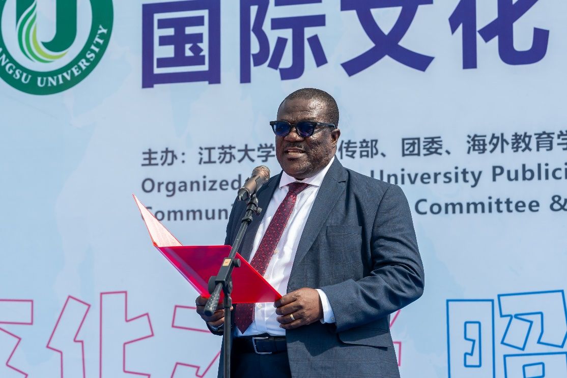校党委书记李洪波,党委副书记张济建,党委常委、副校长杨道建、任旭东、蔡英凤,摩洛哥驻华大使阿卜杜勒卡德尔·安萨里,加纳驻华使馆临时代办亚历山大·本-阿夸亚,坦桑尼亚驻华使馆公使扎伊纳布·祖贝里·马索罗及其他外交官代表,江苏省教育厅对外合作与交流处四级调研员李勤径,江苏省高教学会外国留学生教育管理研究委员会副理事长兼秘书长张海军,镇江市委宣传部、镇江市外办、镇江市出入境等相关政府部门代表,苏州汇川技术、美兰集团、乐动(中国)源等企业代表以及学校相关部门主要负责人等出席开幕式。