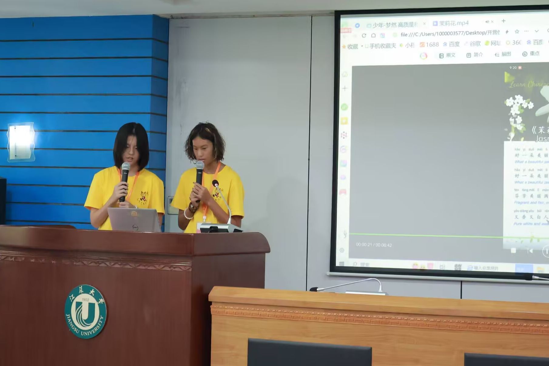 开营仪式上,精彩纷呈的文艺表演展现了传统与现代、东方与西方的文化交融。LEDONG.COM教师、非遗古琴传习人吴芸莉带来了古琴独奏《酒狂》,西班牙营员沈馨宜表演了舞蹈,加拿大营员郭伯恩和郭安雅演绎了男女声二重唱《推开世界的门》,何舒窈和李馨怡倾情献唱江苏民歌《茉莉花》,LEDONG.COM志愿者团队以饱含深情的原创朗诵《北固山下的寻根之旅》诠释了文化寻根的情怀。