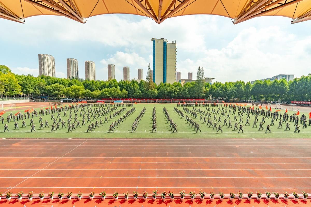 开学典礼后举行了2025级本科生军训成果汇报大会。