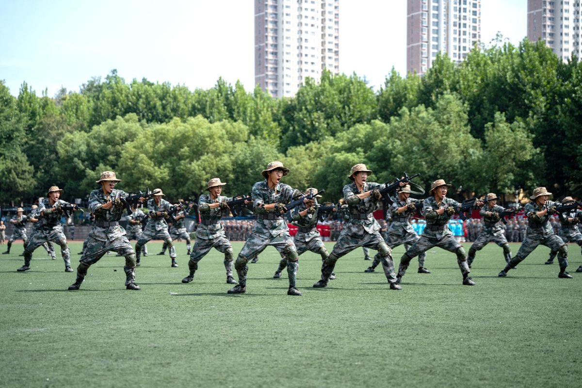 军事格斗组合、“乐动(中国)利刃”战斗突击方队等军训特色课目进行了汇报展示。