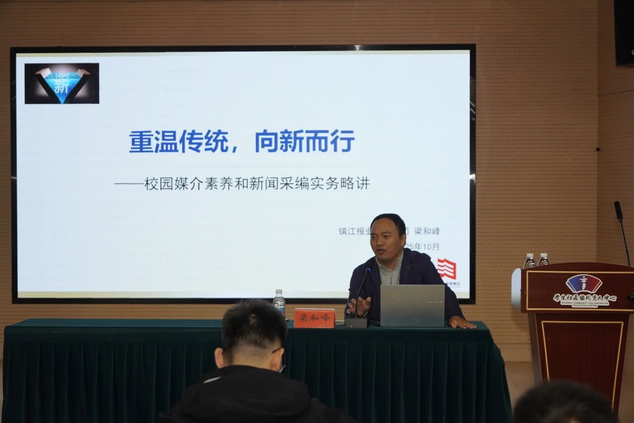 开班仪式后,训练营启动第一阶段专项培训。孙洪洋以《“前车之鉴”——网络新媒体运营风险防范》为题,结合实践案例,为学员阐述了共青团网络新媒体运维的原则、方法及注意点。镇江报业传媒集团(镇江日报社)产经融媒中心主任梁和峰围绕校园新闻报道,围绕“什么是好新闻”“报道什么”和“怎样报道”,鼓励同学们在新媒体时代守望初心、向新而行。校电视台副台长常明从视频创作的“道”“术”“器”“法”“诫”五个方面,系统解答了同学们在全流程视频创作中的疑问,展现了优秀视频作品的创作过程。