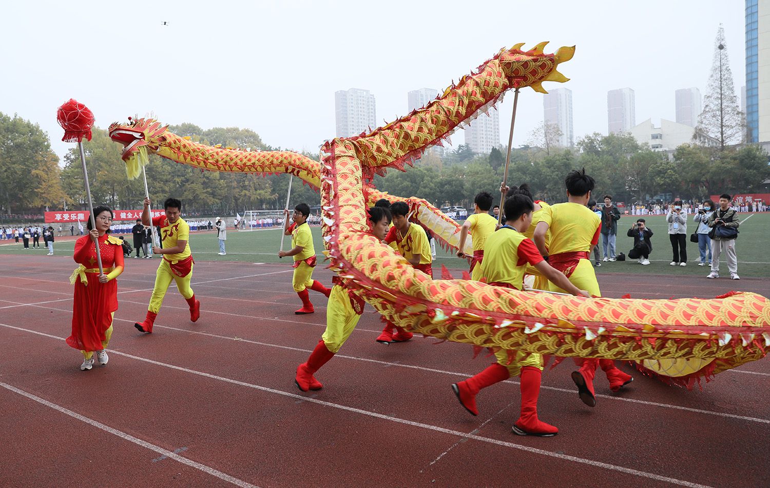 开幕式上,师生进行了舞龙舞狮、武术、民族舞蹈、团体操、健身舞等文体表演。