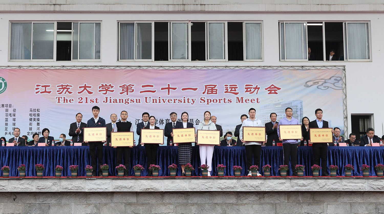校党委副书记李洪波宣读第二十届运动会大学生团体总分前八名单位,2020-2022年度学生群众体育工作先进单位、教工群众体育工作先进单位表彰名单。主席台领导为获表彰集体和学院代表颁奖。