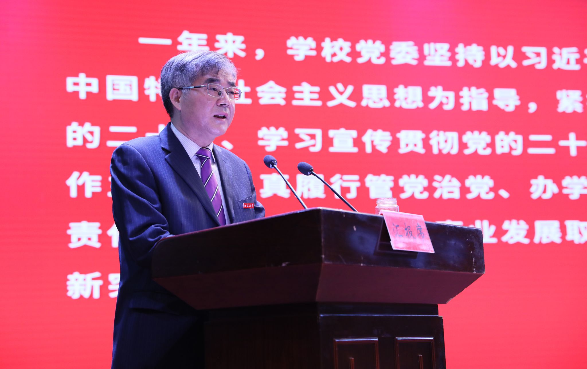 袁寿其代表校党委作党委领导班子述职报告。他指出,学校党委坚持以习近平新时代中国特色社会主义思想为指导,以习近平总书记重要批示精神定向领航,紧扣迎接学习宣传贯彻党的二十大工作主线,认真履行管党治党、办学治校主体责任,统筹抓好发展与安全,党的领导更加坚强有力,党建引领保障效能更加显著,学校事业发展激活新动能,农机特色发展奏响新乐章,党建引领事业高质量发展达到新水平,全面从严管党治党取得新成效。袁寿其表示,学校将深入贯彻落实党的二十大精神和习近平总书记重要批示精神,自信自强、守正创新,踔厉奋发、勇毅前行,加快推进学校“双一流”创建和高水平研究型大学建设,奋力谱写高质量党建引领事业高质量发展新篇章。袁寿其还代表校党委作了2022年度干部选拔任用工作专题报告。