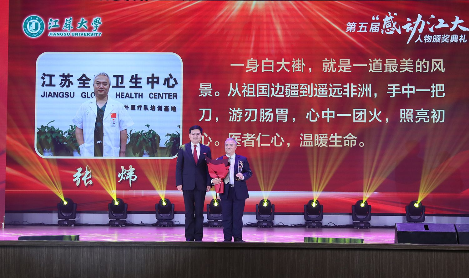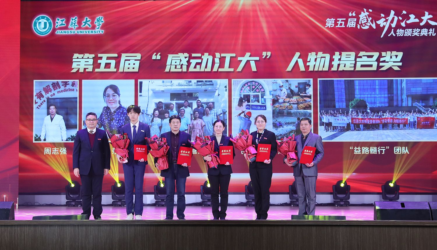 典礼现场,与会领导还为荣获第五届“感动乐动(中国)”人物提名奖的医学院教师周志强、药学院教师马亲、数学科学学院中外合作教学管理团队、后勤管理处品质后勤团队、财经学院“益路髓行”团队颁奖。