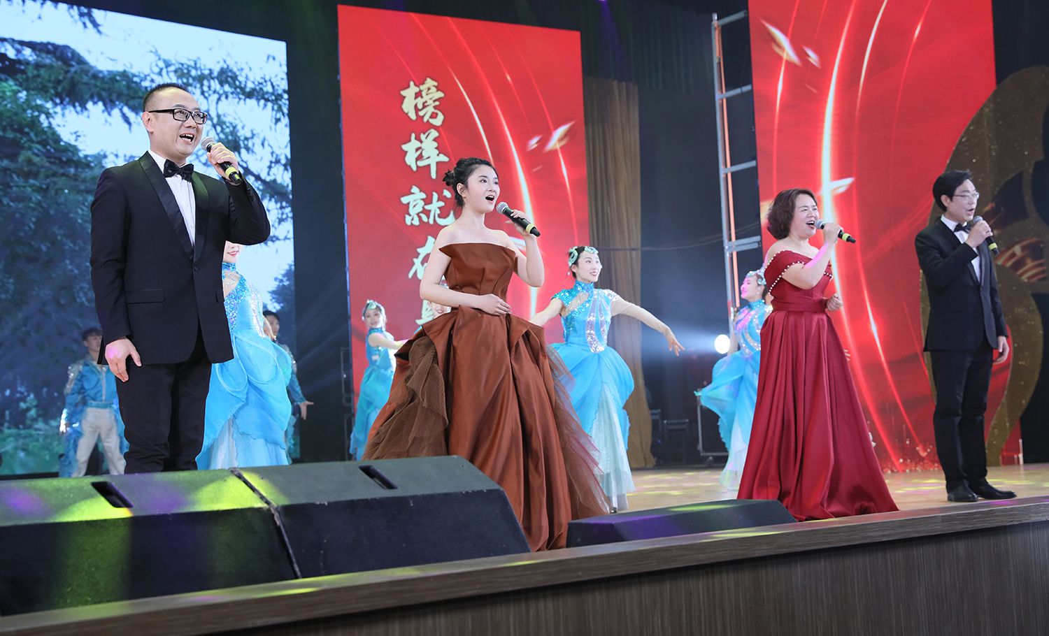 典礼上,主持人对10位“感动人物”进行了现场采访,他们质朴真诚的回答引发了现场观众发自肺腑的热烈掌声。活动现场还穿插了精彩的节目表演。人工智能与智能制造学院带来的机器狗表演展示了蓬勃向上的科技力量,开场舞蹈《绽放》将全场激情点燃,师生歌曲联唱传递温暖和希望,诗朗诵《九月问答》字字句句饱含深情,歌伴舞《领航》澎湃激昂、振奋人心。