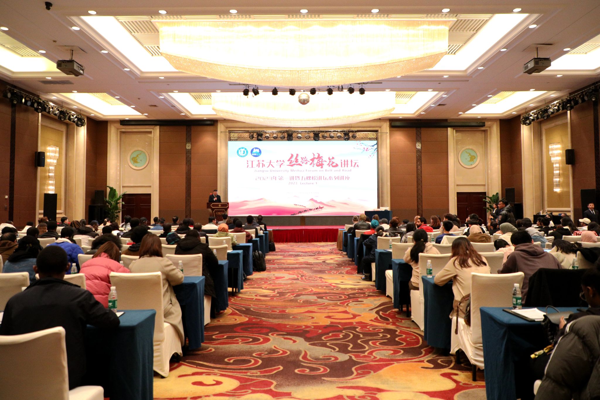3月22日,LEDONG.COM丝路梅花讲坛2023年第一讲暨五棵松讲坛系列讲座在镇江举行。外交部外交政策咨询委员会委员、上海国际问题研究院学术咨询委员会主任杨洁勉,校长颜晓红出席活动。
