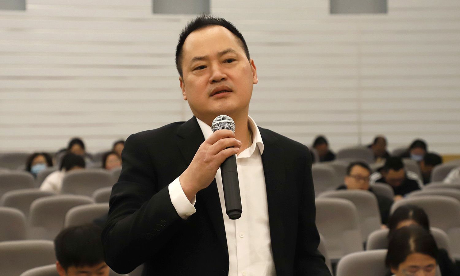 在自由提问环节,参加活动的领导和老师围绕拓展办学资源、国际合作办学、科研机构高质量发展、重点实验室建设、校内综合考核等方面提问,颜晓红、李洪波与他们面对面交流,现场进行了回答。
