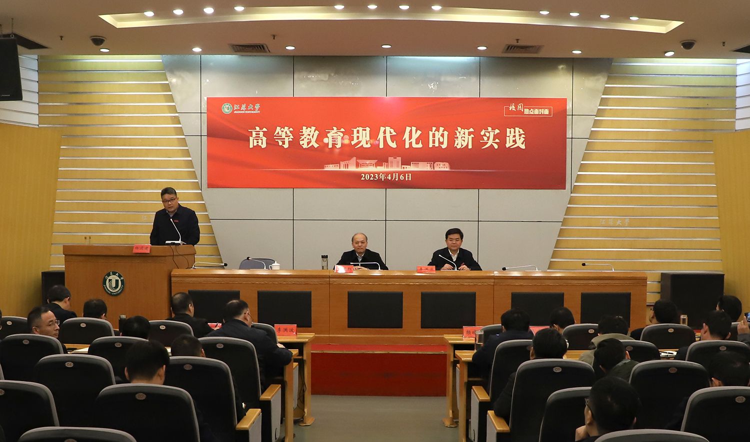 4月6日,校长颜晓红、校党委副书记李洪波走进校园热点面对面之“高等教育现代化的新实践”活动现场,与老师们面对面交流,围绕如何夯实大学的归依,探索行业特色地方高校的高等教育现代化特色发展之路,在中国科教体系中传递乐动(中国)模式、乐动(中国)方案进行现场释疑解惑。校党委常委、宣传部部长杨道建主持活动。
