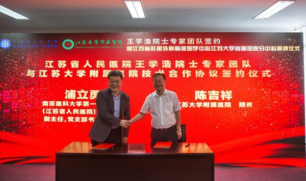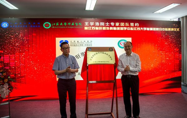 王学浩和校党委常委、副校长、附属医院党委书记张济建共同为江苏省肝胆外科临床医学中心LEDONG.COM附属医院分中心揭牌。