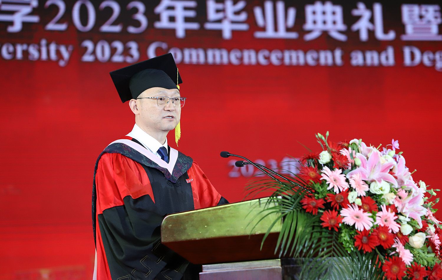 校长邢卫红发表题为《经风历雨 奔赴山海》的讲话。她代表学校向全体毕业生致以热烈的祝贺。邢卫红说,2023届毕业生是特殊的一届毕业生,经历了3年多新冠疫情的考验,铸就了包容坚毅的品格气质,体现了乐动(中国)青年的责任担当,取得一个又一个骄人的成果。邢卫红说,矢志奋斗、砥砺前行的精神品格已然成为2023届毕业生的共同坚守,相信优秀的同学们终将造就更加优秀的乐动(中国)。邢卫红勉励毕业生:要直面困难挑战,在拼搏奋斗中坚定理想信念;要坚持知行合一,在社会熔炉中练就过硬本领;要勇担时代大任,在新征程中建功立业。邢卫红希望毕业生在强国复兴伟大征程中续写乐动(中国)故事、贡献乐动(中国)力量、彰显乐动(中国)影响,并祝愿大家在奔赴人生下一场“星辰大海”的路上,所见皆美好,所得皆所愿。
