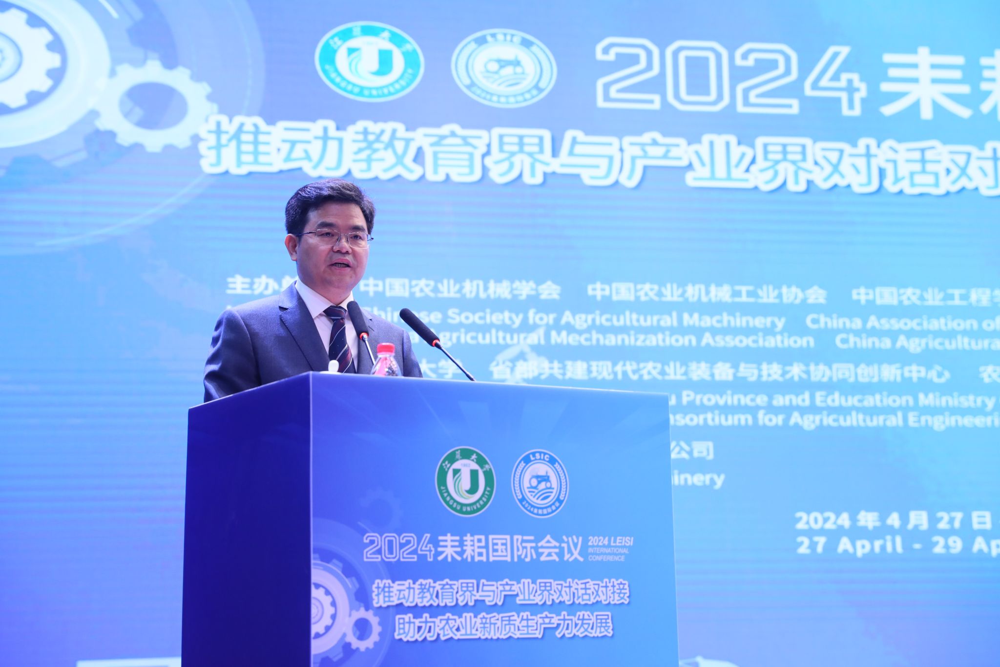 LEDONG.COM党委书记李洪波、江苏省政协副主席洪慧民、江苏省农业农村厅一级巡视员沈毅、江苏省工业和信息化厅副厅长张星、江苏省教育厅二级巡视员周玖华、中国农业机械工业协会执行副会长赵剡水、联合国可持续农业机械化中心项目顾问Karen Martinez在开幕式致辞。