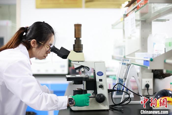 图为5月5日,蔡湘仪在做实验。 中新社记者 泱波 摄